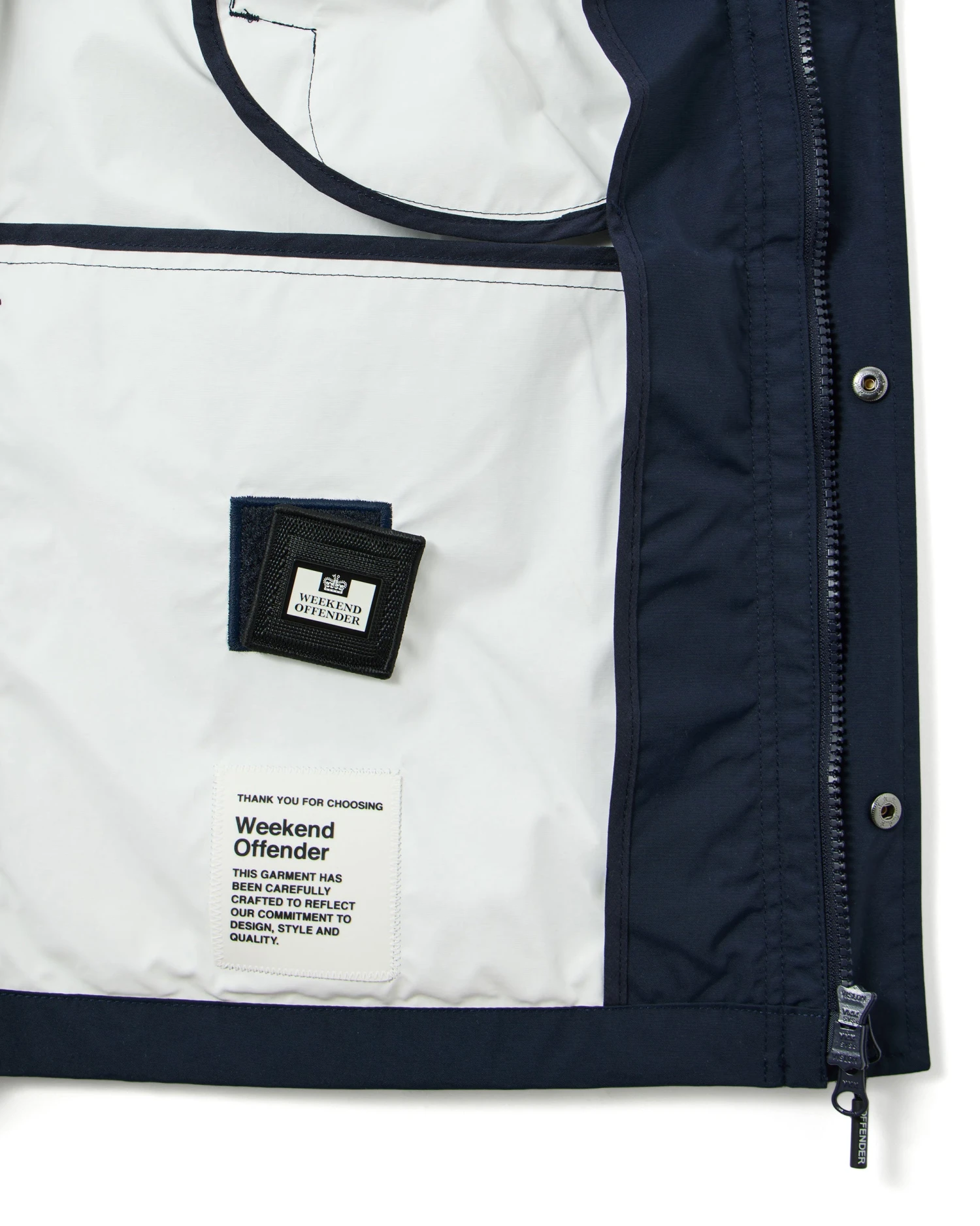 â–ª Storm placket with small WO branded press studs