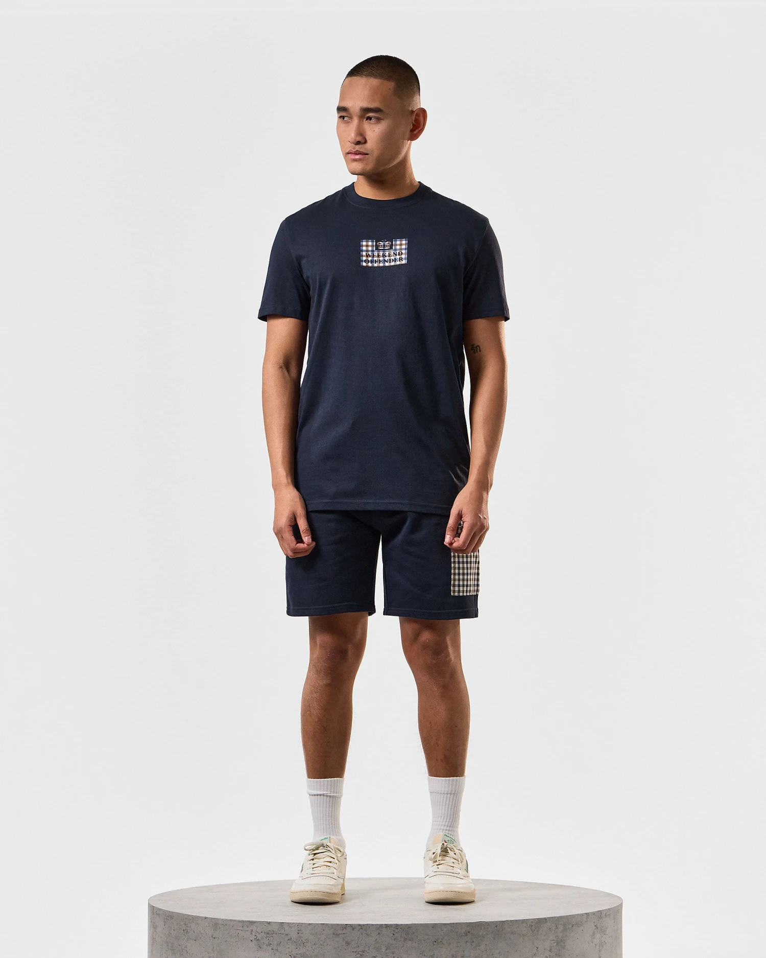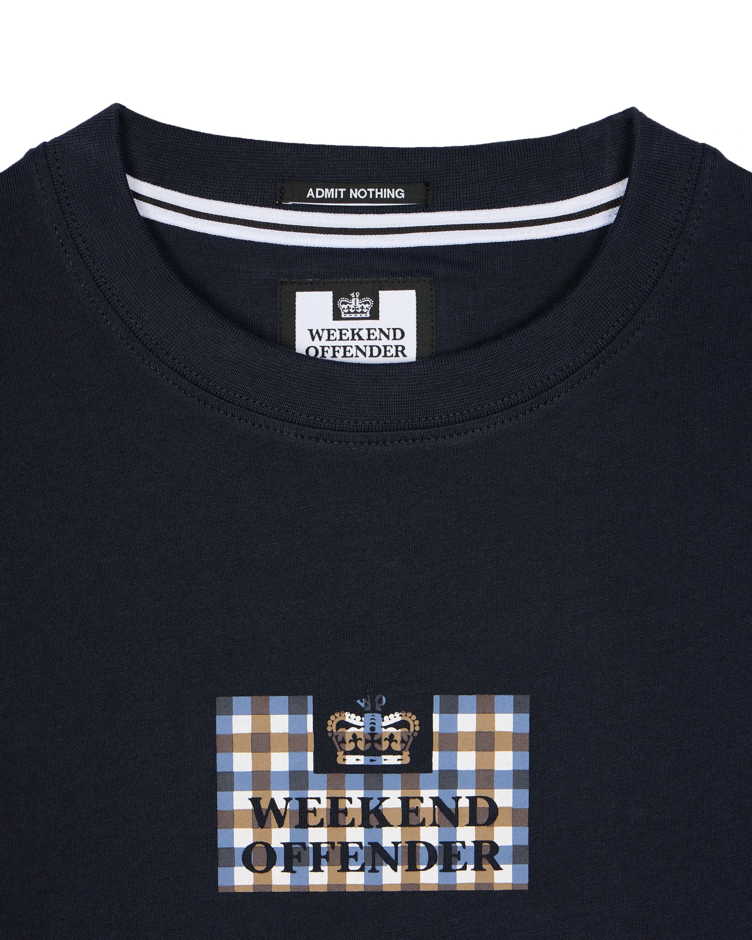 â–ª Mid house check rubber based prison print to chest