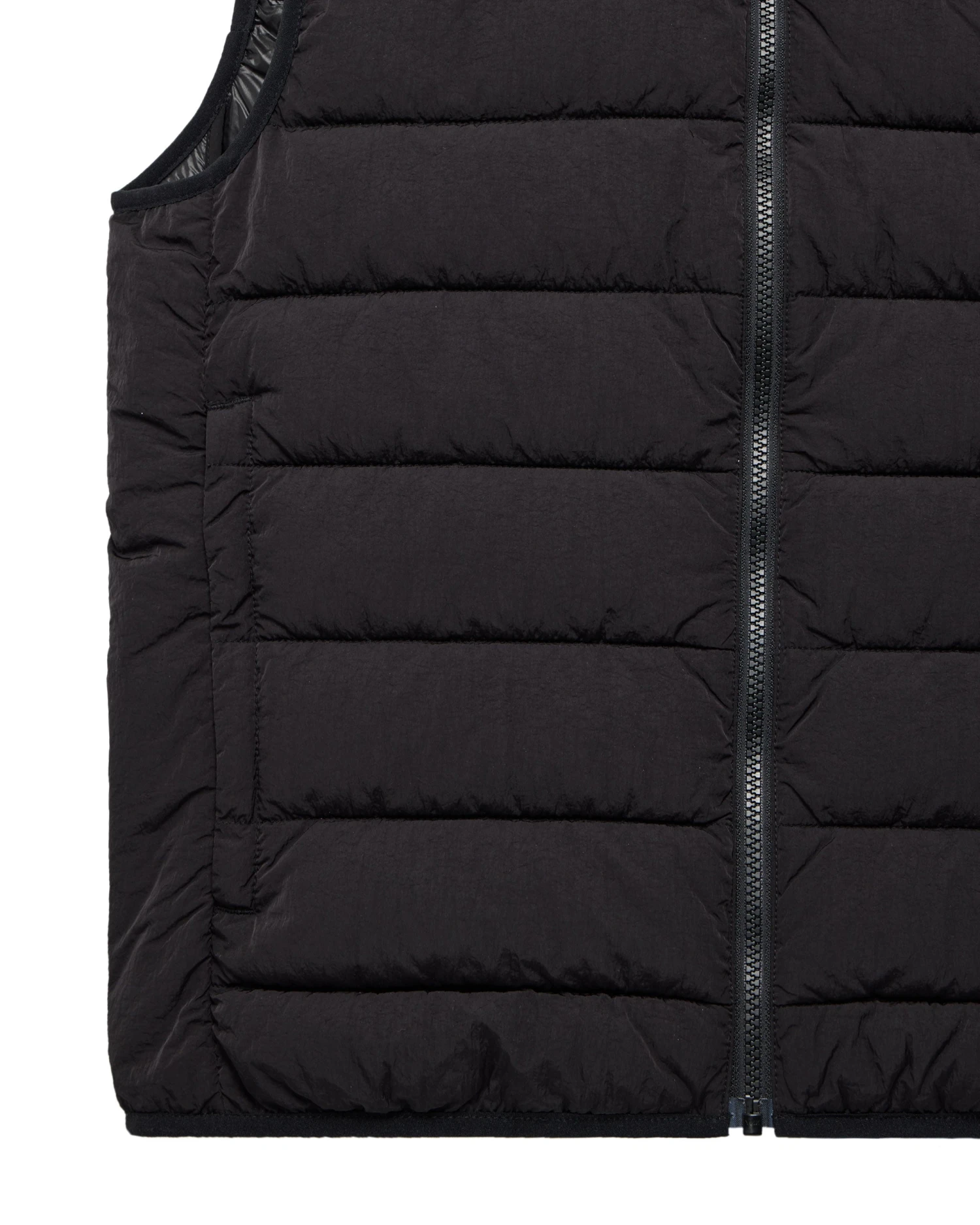 The Gacha Padded Gilet is made from lightweight high density woven 100% Nylon parachute style fabric with misted lightly reflective surface. Treated with an additional DWR (Durable Water Repellent) coating.