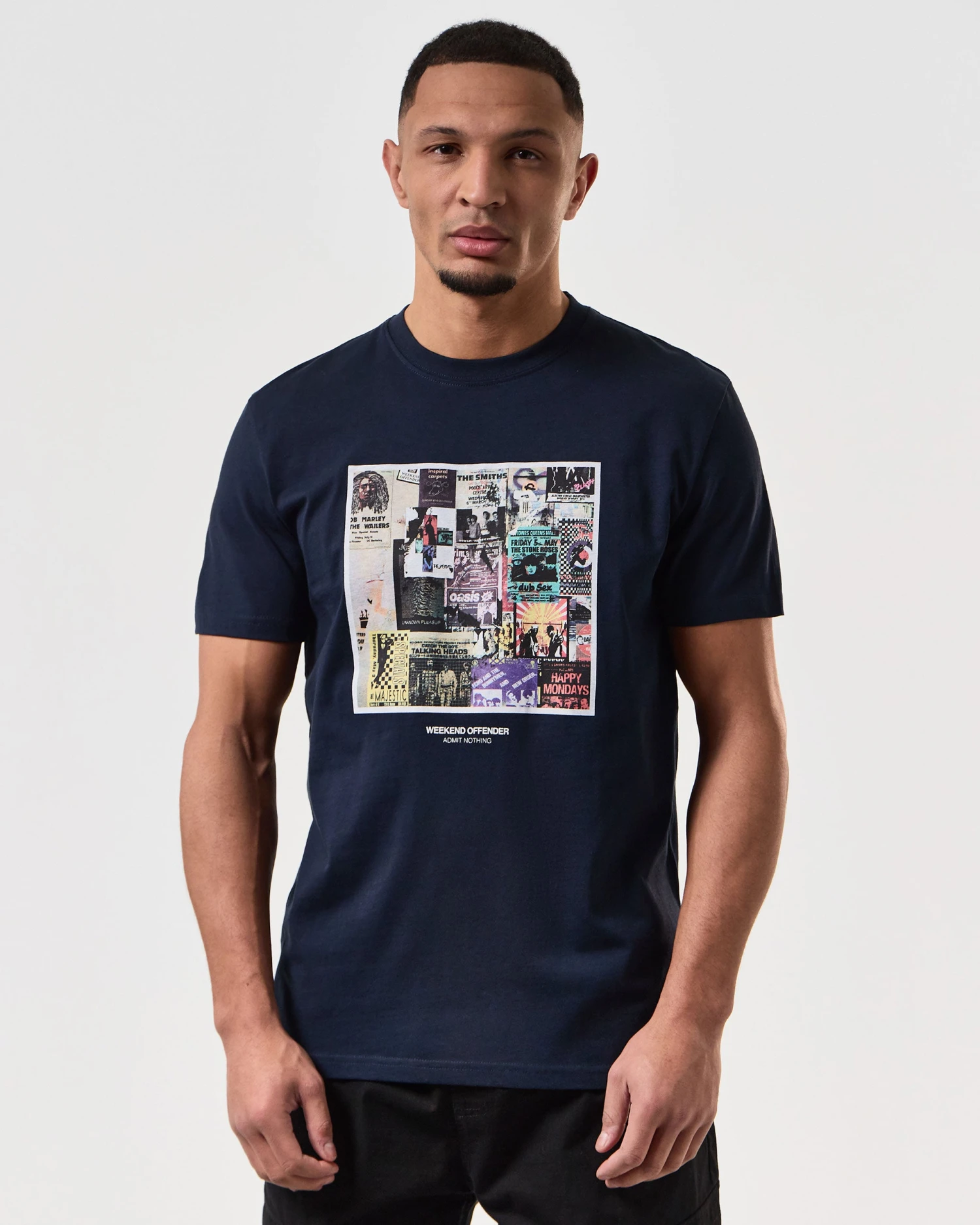 Graphic tee with a wall of posters pasted over each from seminal gigs through the years, some of which you might have, or wish you’d attended.