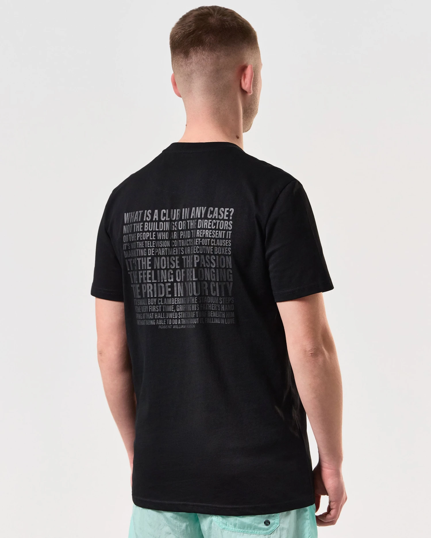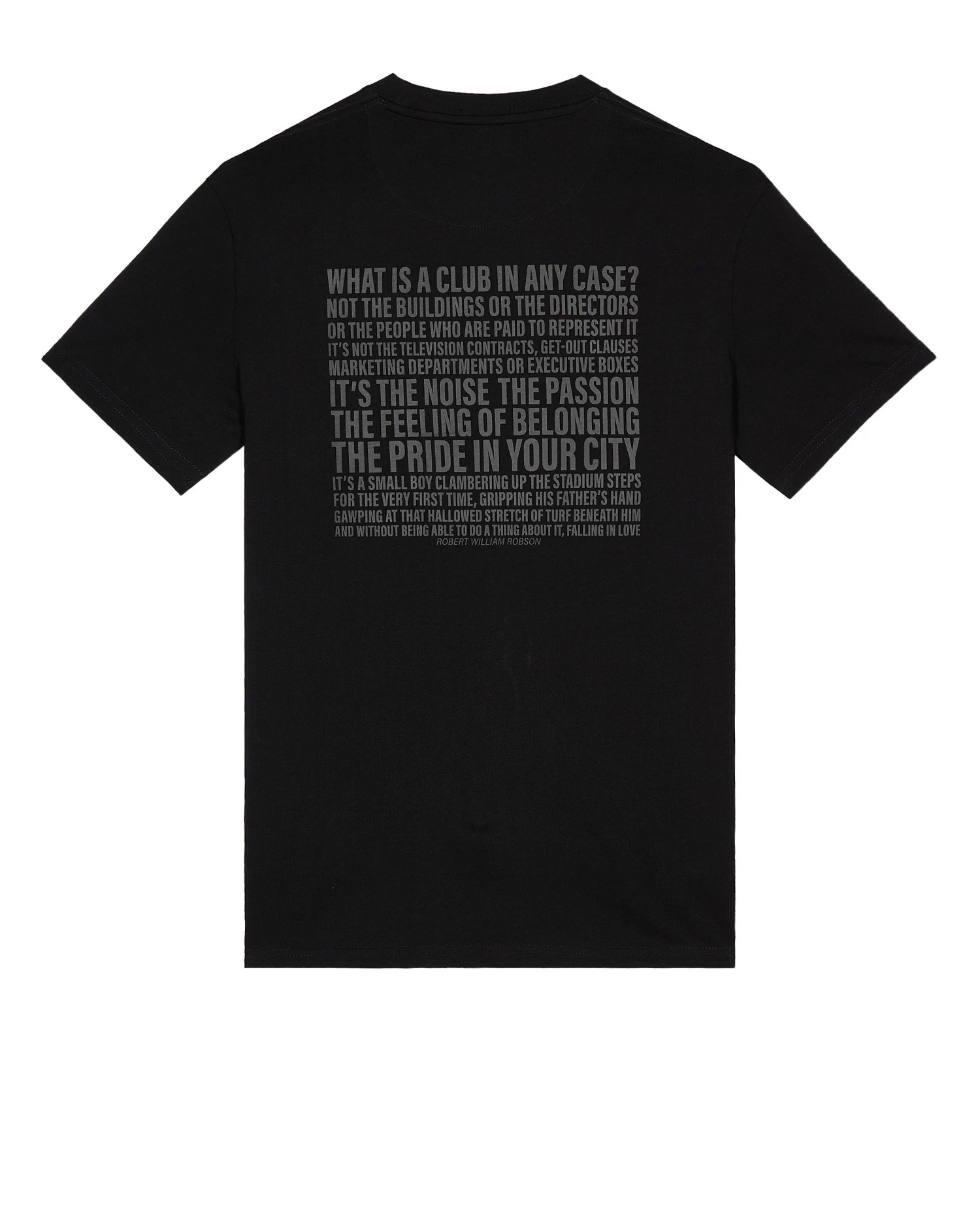 Graphic tee featuring a from father to son inspired design depicting the bond between father and son going to first football match with a quote from English manager Sir Bobby Robson on the back.