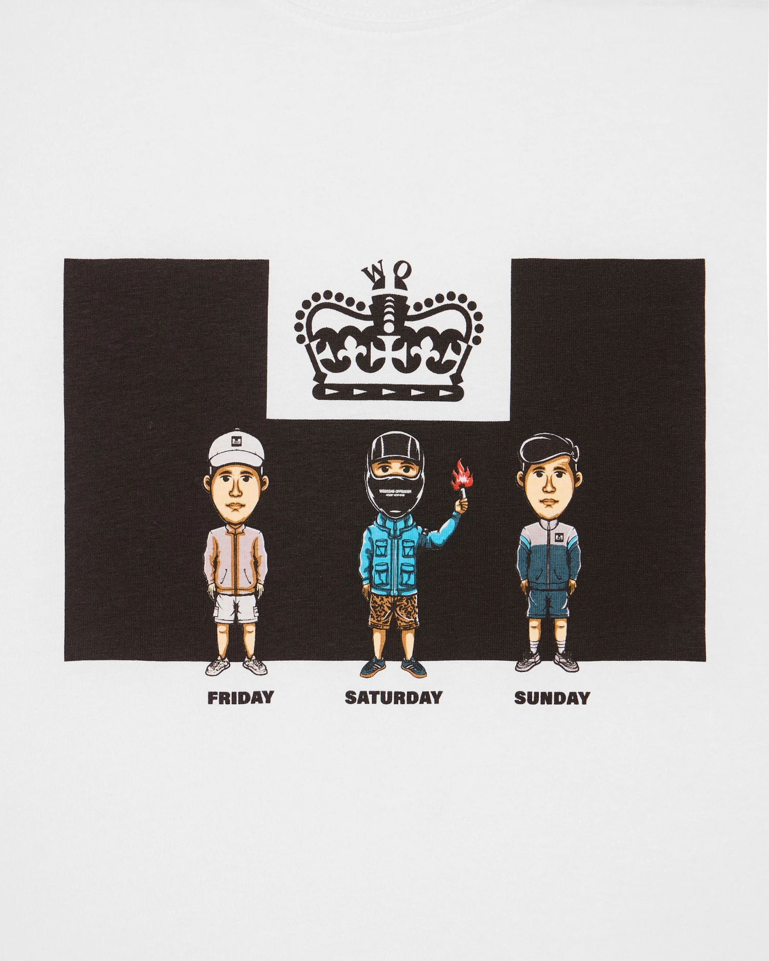Graphic tee featuring football casuals and ultras dressed for the Weekend.